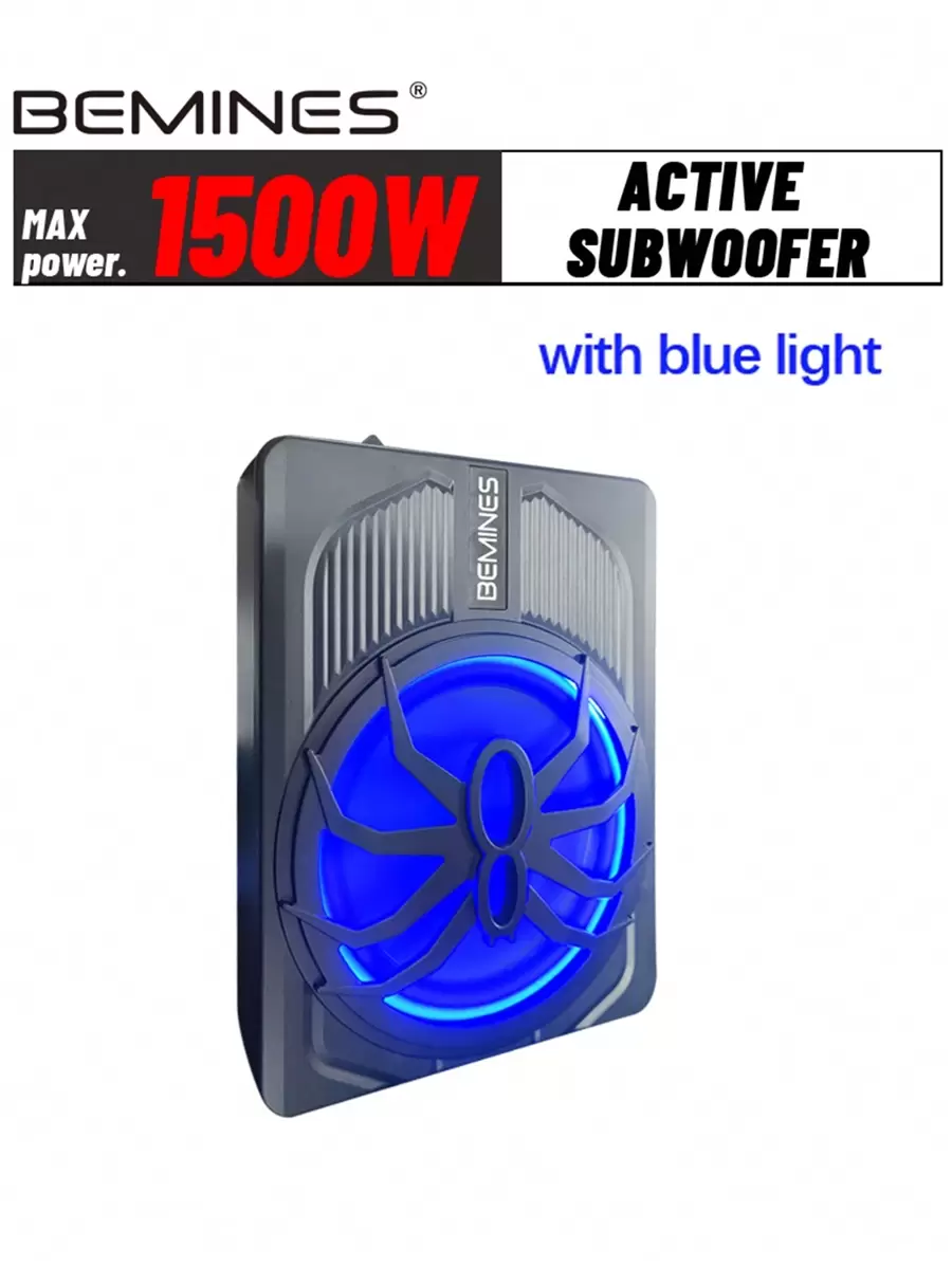 1pc Bemines Qmf 106z Black Speaker Box With Blue Light, Stereo Sound, Heat Dissipation Design, All-Aluminum Body, Car Subwoofer, Ultra-Thin, High Power 1500w, 10 Inches, Suitable For All Cars