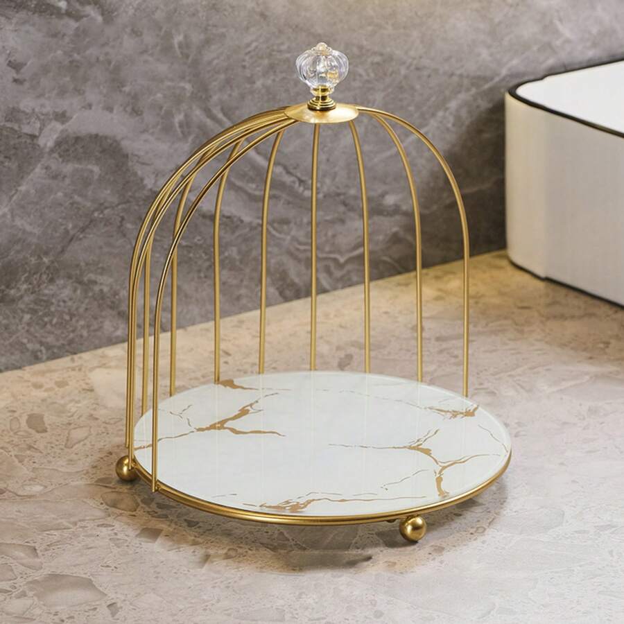 1pc Birdcage Shaped Iron Storage Rack, For Bathroom Cosmetic Organizer, Tabletop Lipstick Holder, Skincare Products And Toiletries Storage Rack