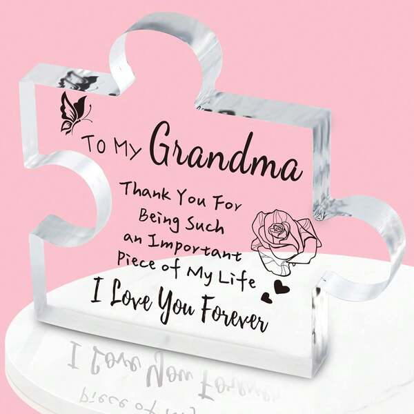 1pc Birthday Gifts for grandma - Engraved Acrylic Block Puzzle grandma Present - Cute Birthday Gifts from grandma, Happy Birthday grandma Gift,Commemorative gift