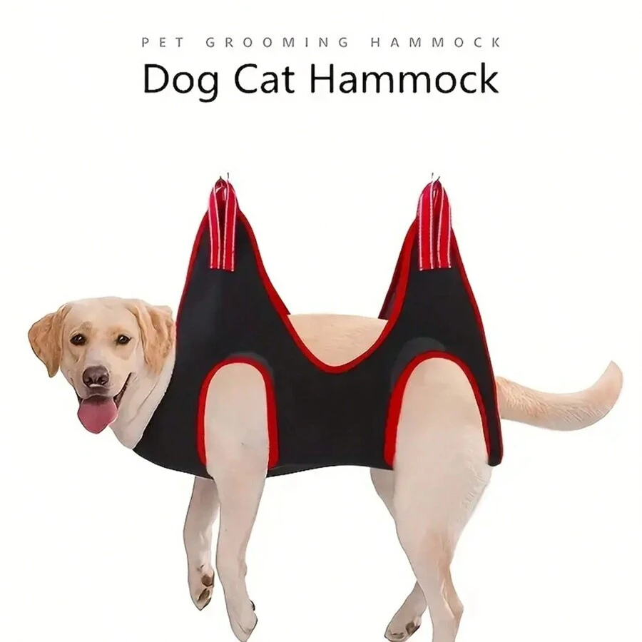 1pc Black & Red Breathable Hanging Pet Grooming Bed For Cats And Dogs, Suitable For Small And Medium-Sized Pets To Trim Nails And Clean The Fur