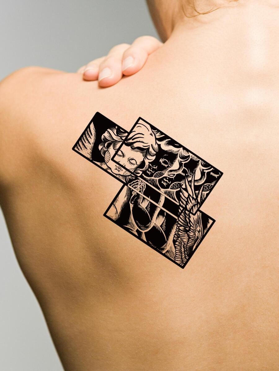 1pc Black & White Checkerboard Pattern Temporary Tattoo Sticker