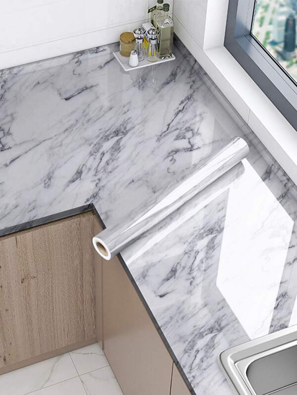 1pc Black & White Marble Effect Self-adhesive Kitchen Sticker For Cabinet Drawer, Waterproof, Oilproof And Temperature Resistant Wallpaper For Renewal