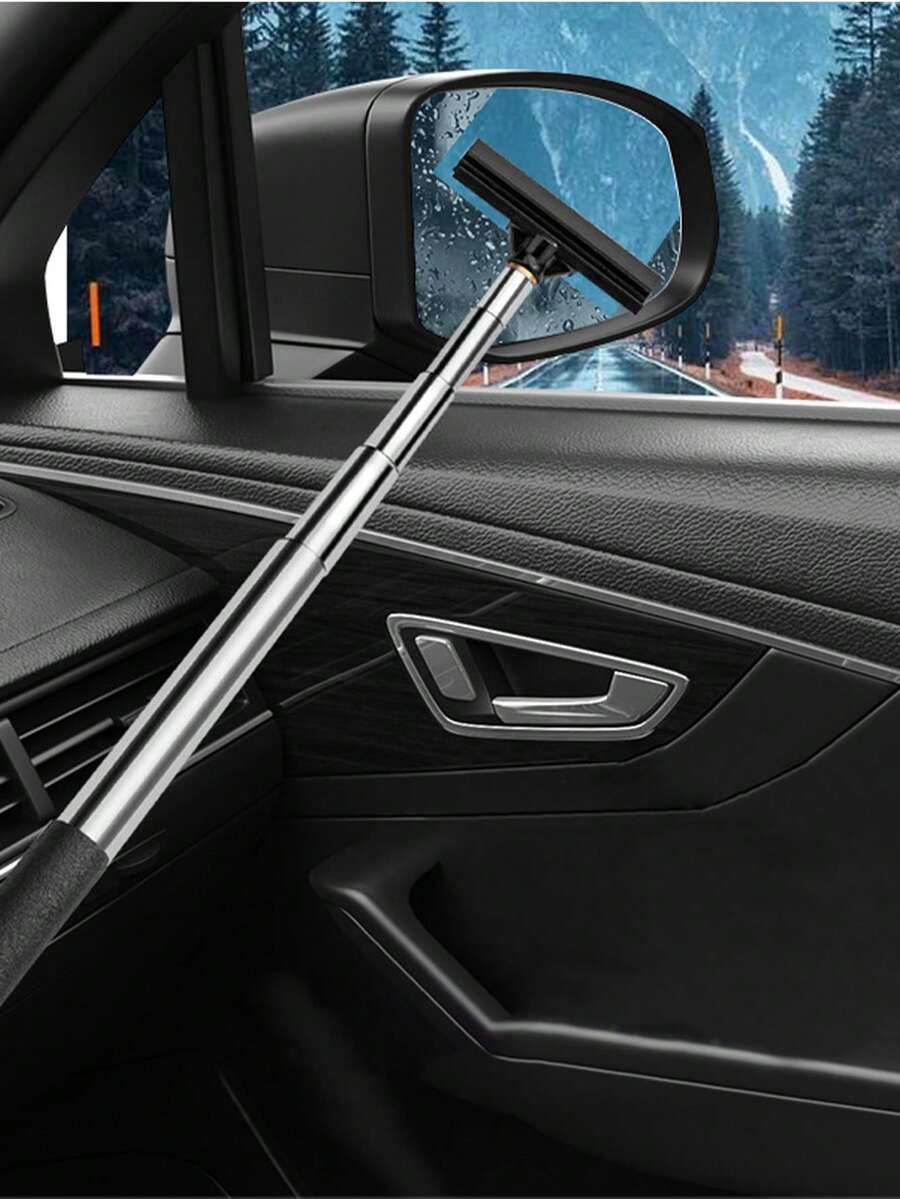 1pc Black Car Rearview Mirror Scraper, Stainless Steel Telescopic Rain Wiper, Anti-fog