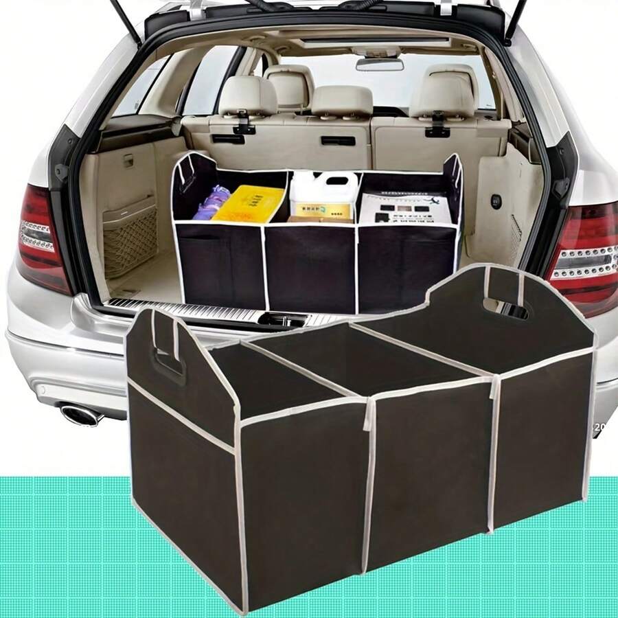 1pc Black Collapsible Car Storage Box, Lightweight High Capacity Container, Portable Box With Mesh