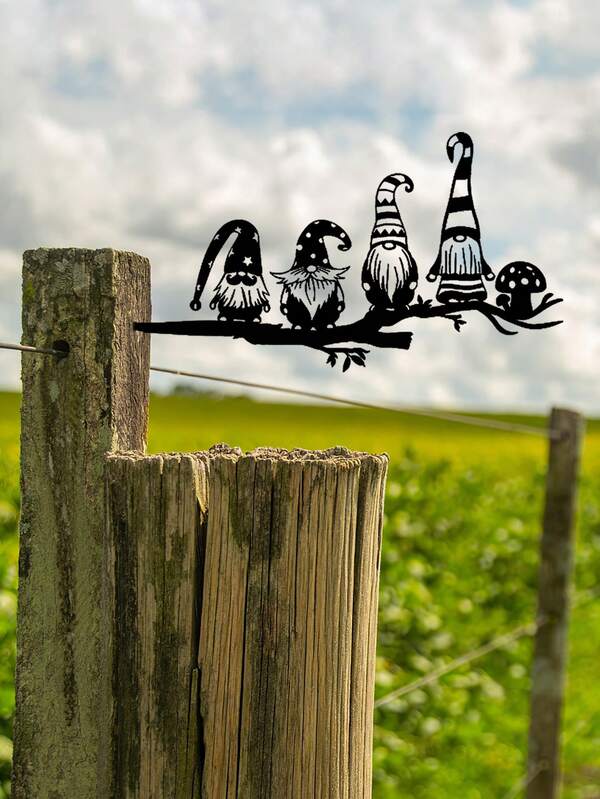 1pc Black Hat Dwarf Shape Tree Decoration, Iron Material, Cartoon Style, Minimalist Garden Sign Decor, For Trees/Branches/Stems