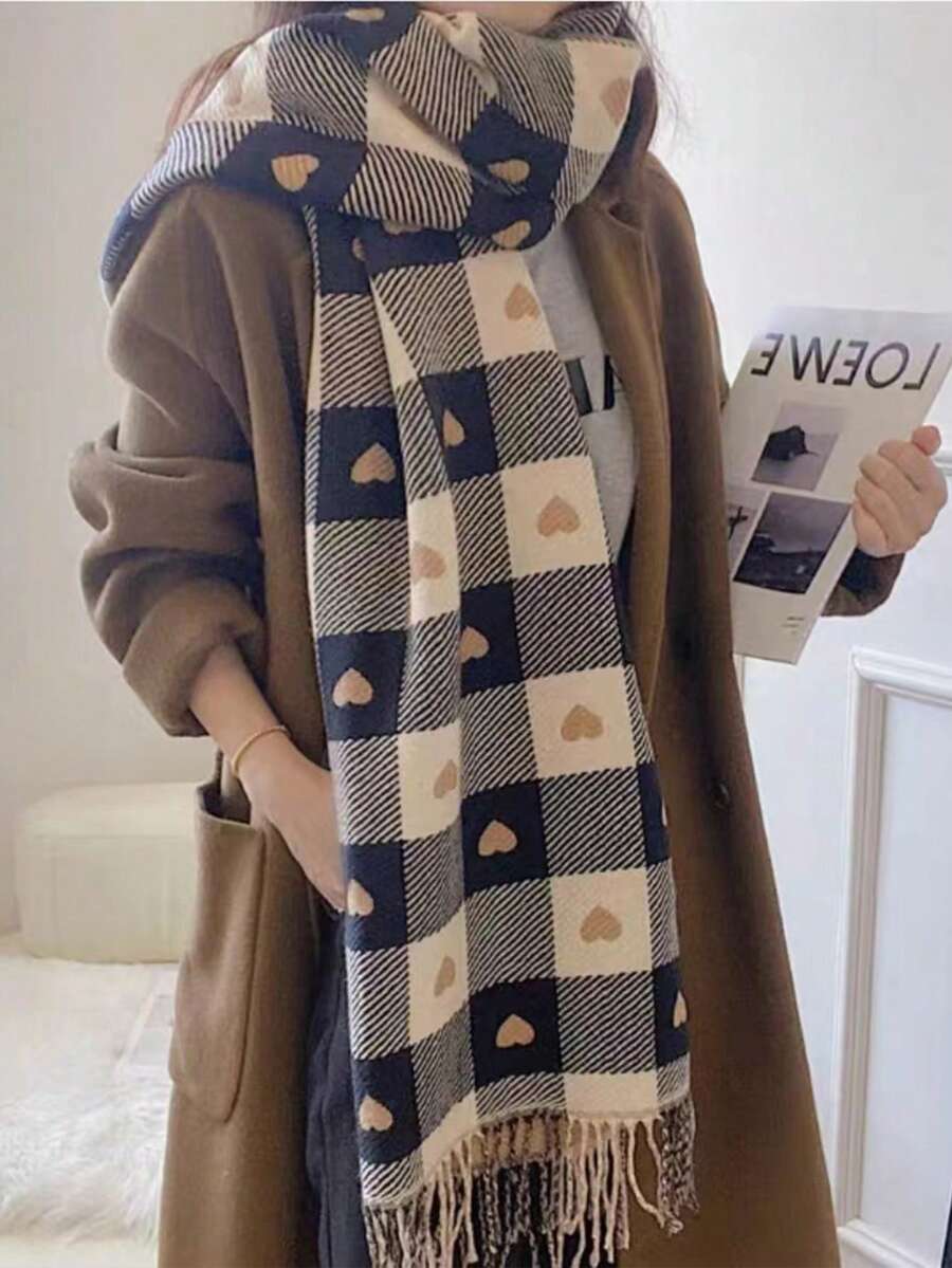 1pc Black Heart Shape Pattern Women's Scarf, Fashionable, Soft, Warm And Suitable For Everyday Wear