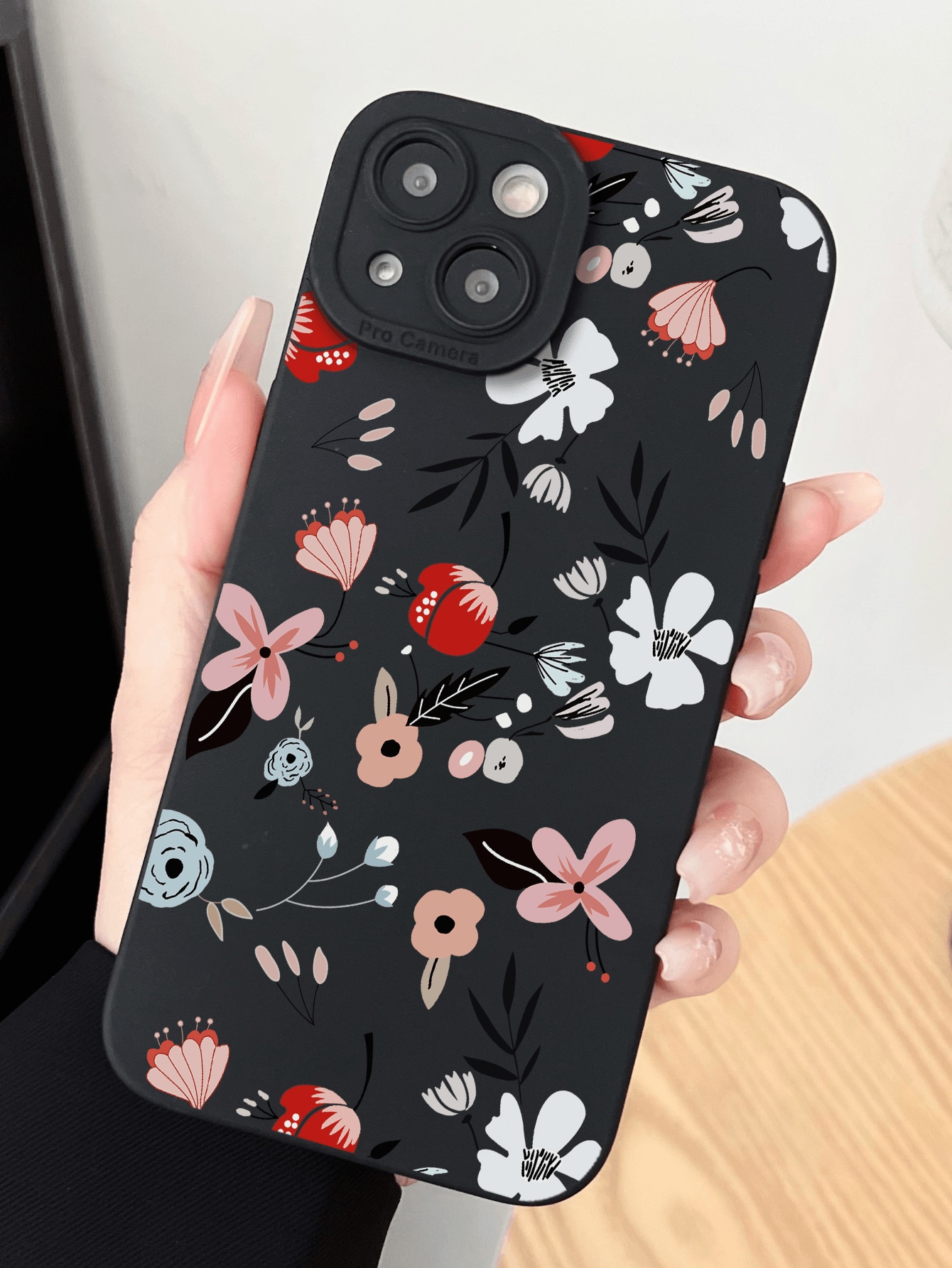 1pc Black Matte Full-Printed Floral Pattern Phone Case With Clear Matte Feeling & Camera Protector, Compatible For Iphone 15pro Max/Xr/7plus/Se/11 And Samsung, Phonecase For Iphone14/15pro Max, Winter