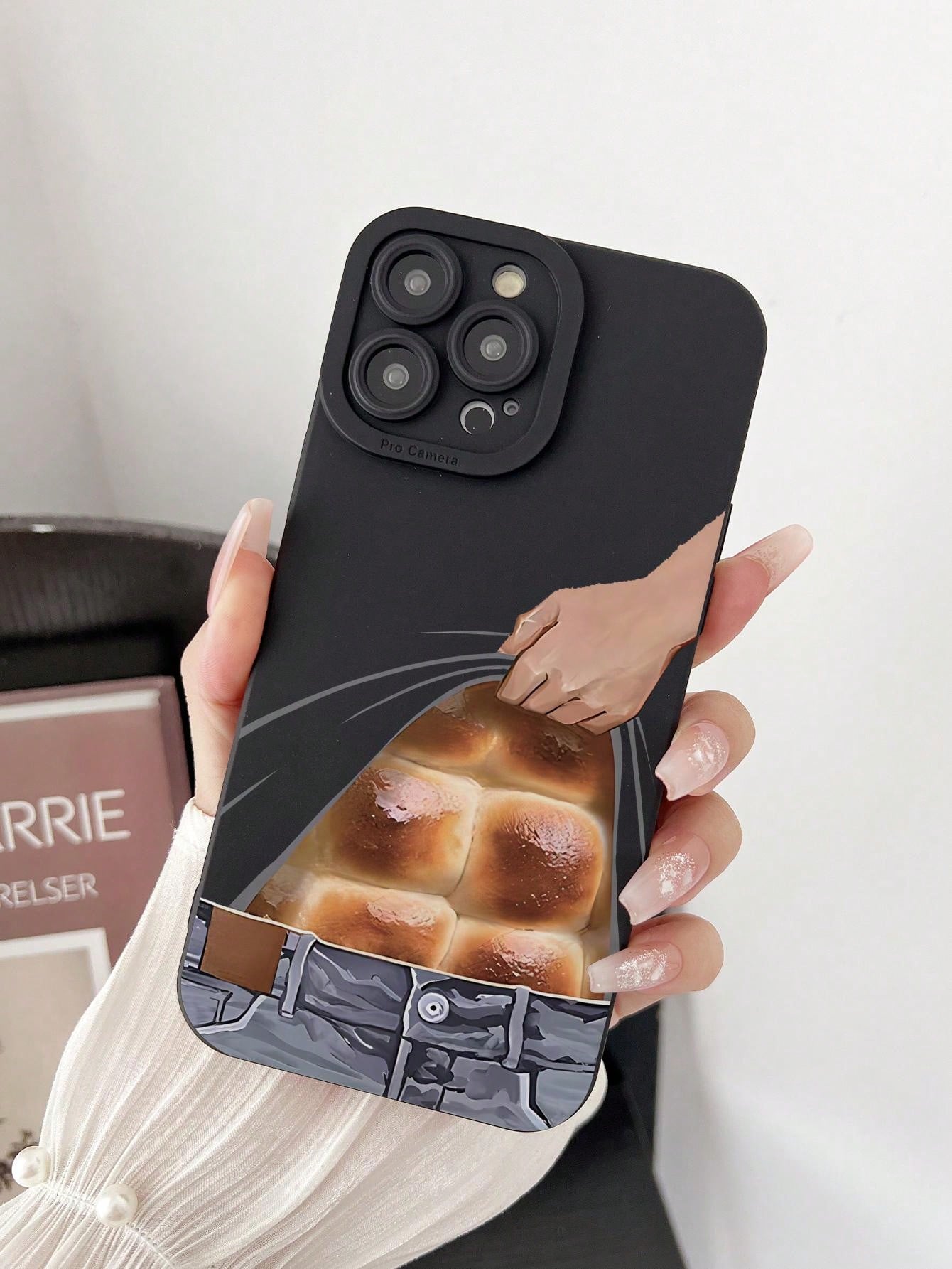 1pc Black Novelty Abs Muscle Texture & Skin-friendly Tpu Phone Case, Full Coverage & Anti-drop, Compatible With Iphone Models