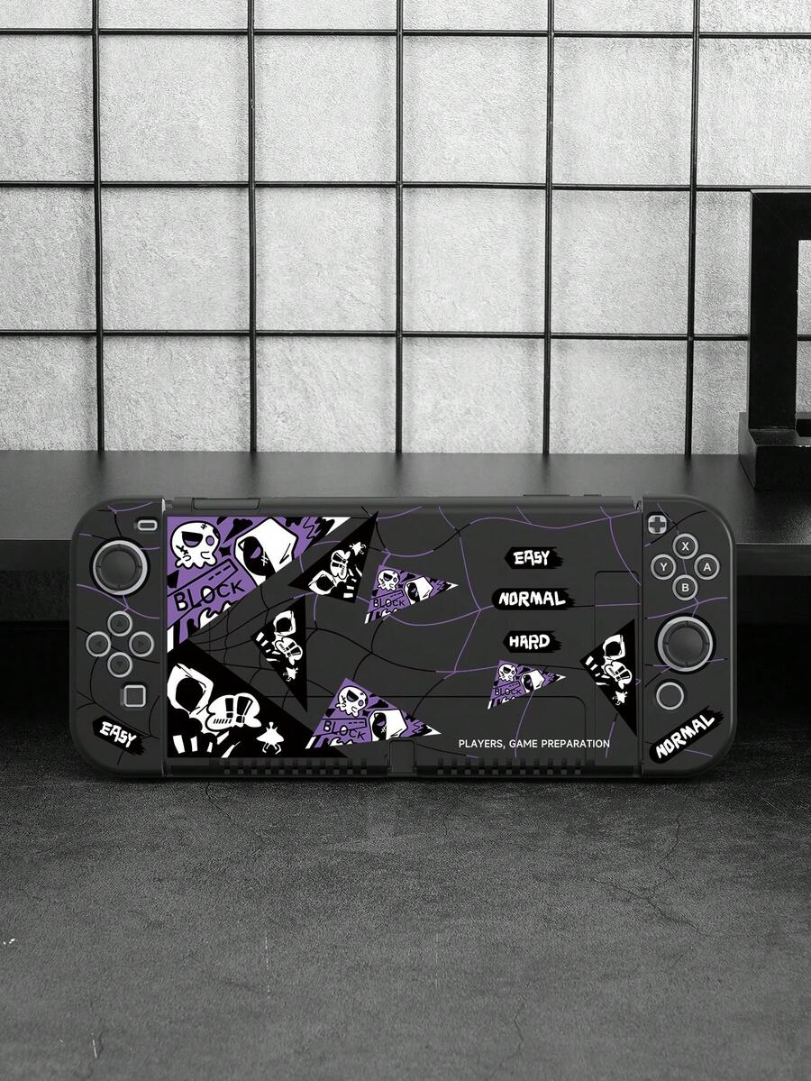 1pc Black Purple Spiderweb Pattern Tpu Protective Case For Switch Oled