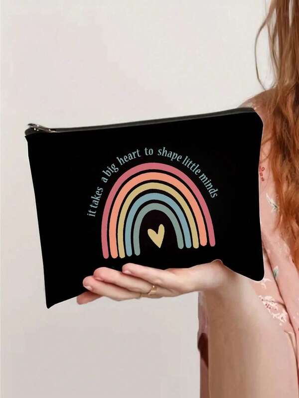 1pc Black Rainbow Alphabet Organizer, Inspire Your Teachers With This Loving Cosmetic Bag - Women'S Men'S Cosmetic Bag Travel Toiletry Organizer, Back To School Teacher Gift, Thank You Teacher Cosmetic Bag, Organizer, Handbag Hold Bag, Gift Bag, Toiletry Bag, Travel Beauty Bag - Portable Travel Toiletry Bag, Ideal Gift For Elders On Christmas, Teacher'S Day, Holidays, Great For Back To School And Traveling