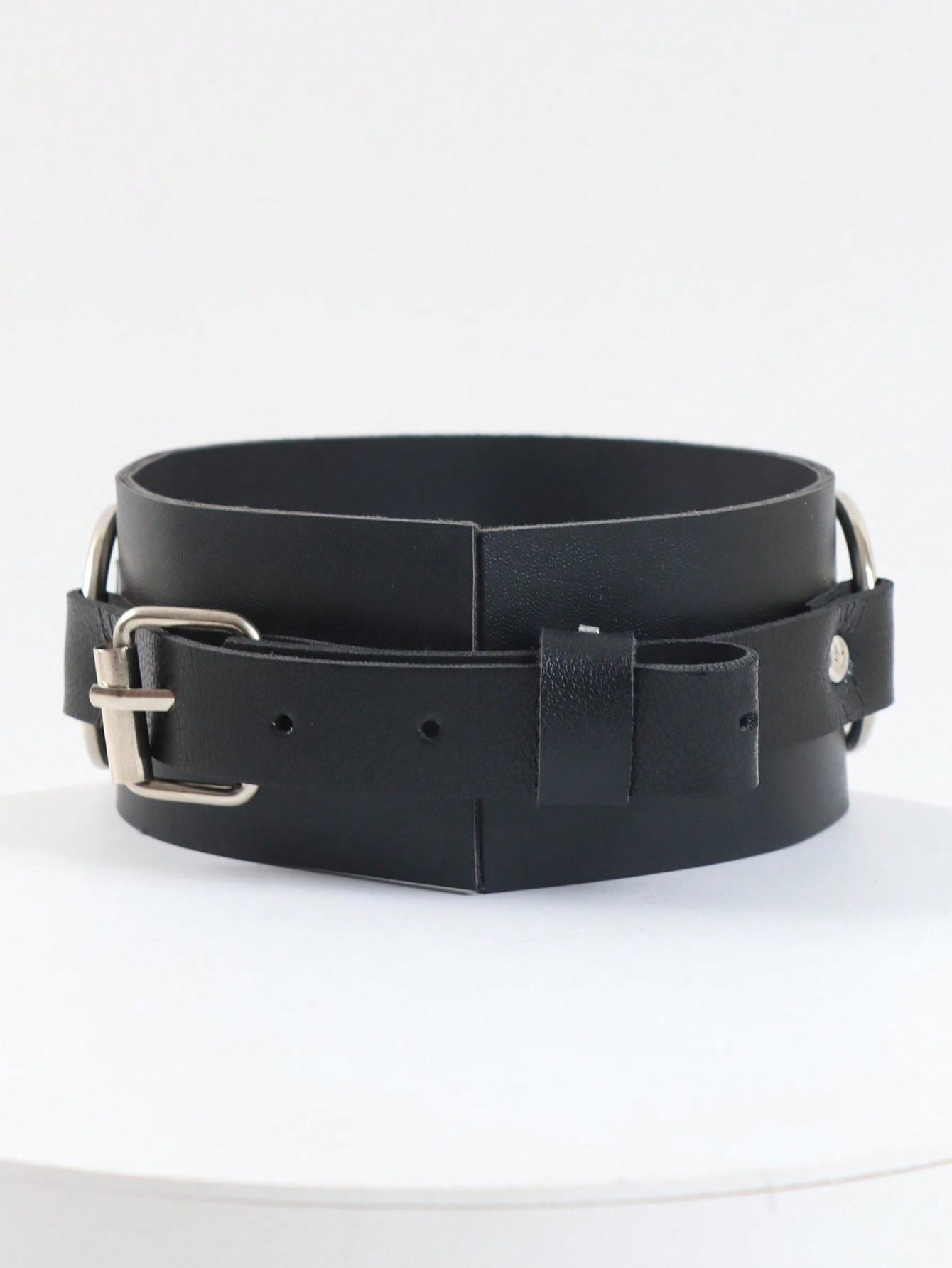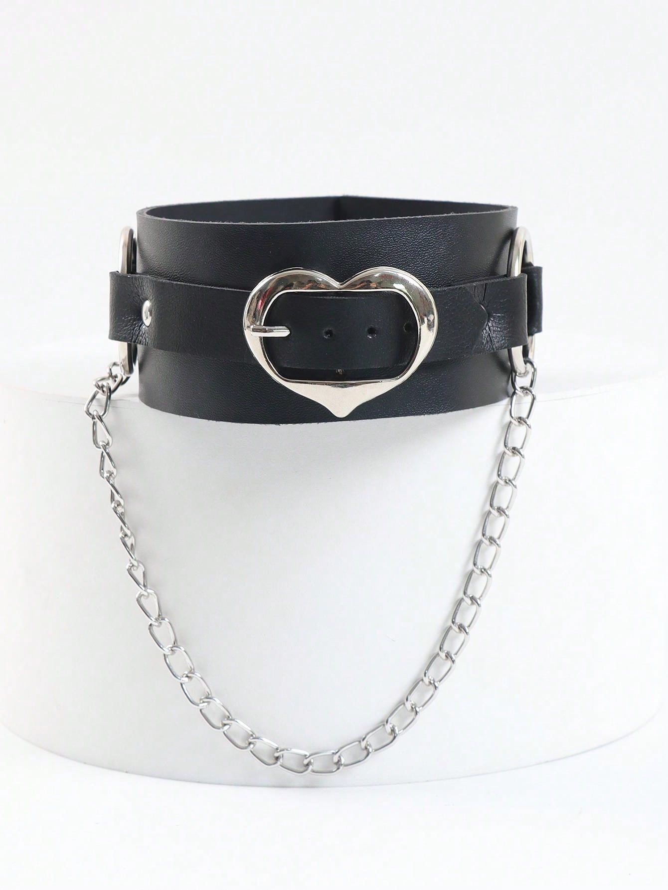 1pc Black Vintage Rivet Punk Style Multi-Chain Leather Collar Necklace With Unique Heart Pendant
