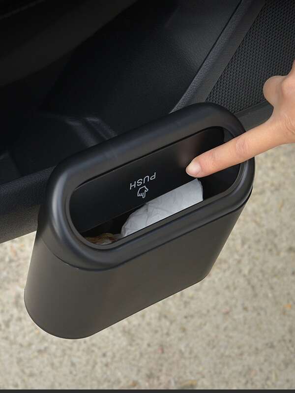 1pc Black/blue Abs Plastic Car Trash Can, Multifunctional Hanging Side Pocket With Lid And Waterproof Design, Suitable For Various Car Models