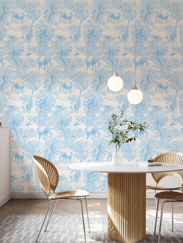 1pc Blue Art Wall Background Wallpaper,Outdoor Landscape Wallpaper Deep Forest Elephant Giraffe Animal Wallpaper, Home Decoration Wallpaper