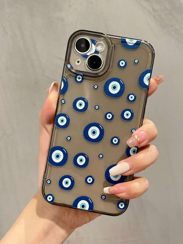 1pc Blue Eye Printed Clear Thickened Anti-Fall Phone Case For Apple 11/12/13/14/15 Pro Max