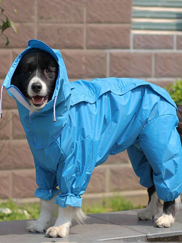 1pc Blue Full Coverage Raincoat For Medium To Large Dogs