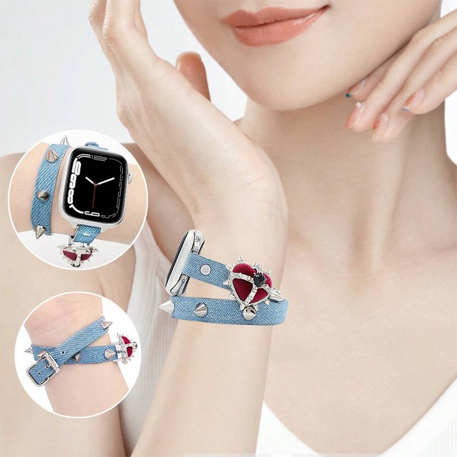 1pc Blue Women's Heart Studs Zinc Alloy Strap For Smart Watch, Compatible With 38/40/41/42/44/45/49mm, For Apple Watch Ultra/Se/9/8/7/6/5/4/3/2/1