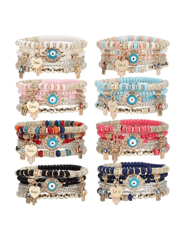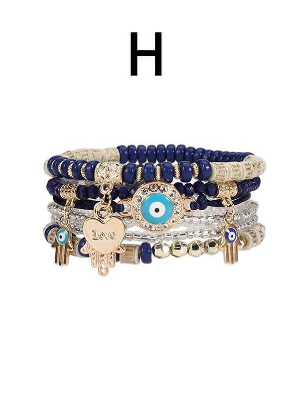1pc Bohemian Evil Eye & Palm & Heart Charm Beaded Multi-layer Bracelet