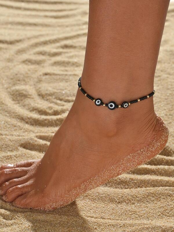 1pc Bohemian Eye Decor Beaded Anklet For Women For Vacation
