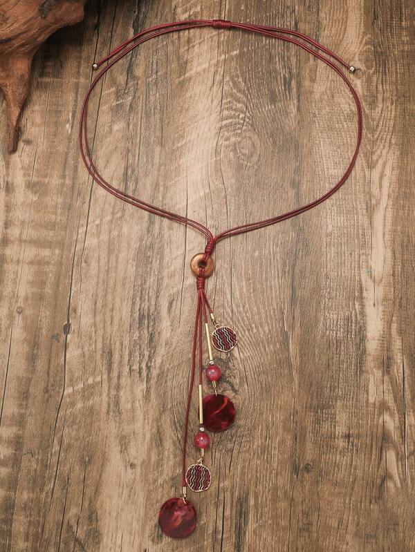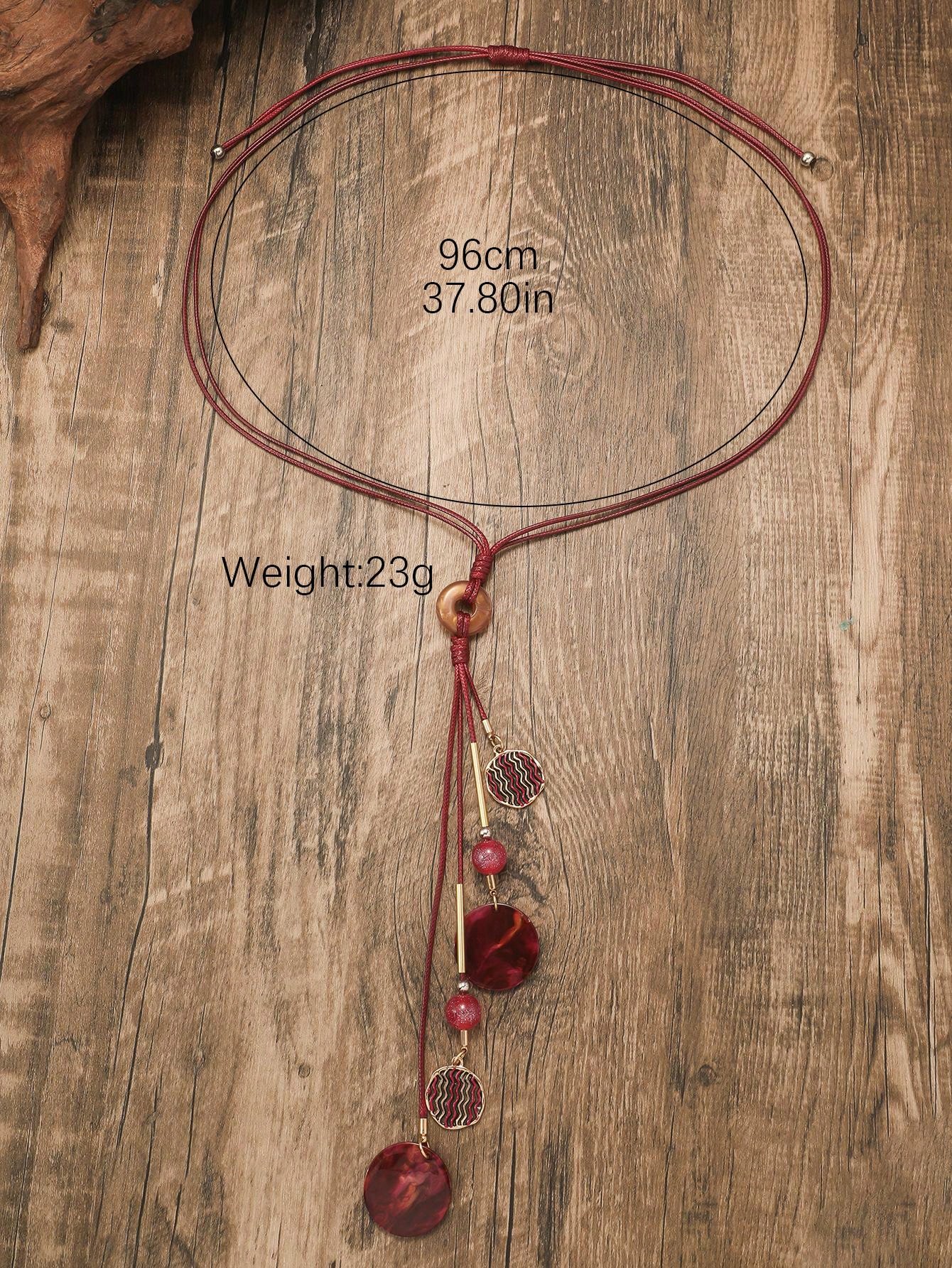 1pc Bohemian Style Y-Shaped Enamel Colorful Plate String Beaded Wax Rope Chain Necklace, Random Color