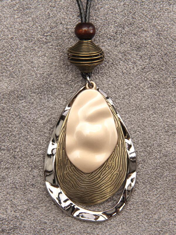 1pc Bohemian Textured Detail Large Water-Drop Pendant Long Necklace For Women For Outdoor Travel