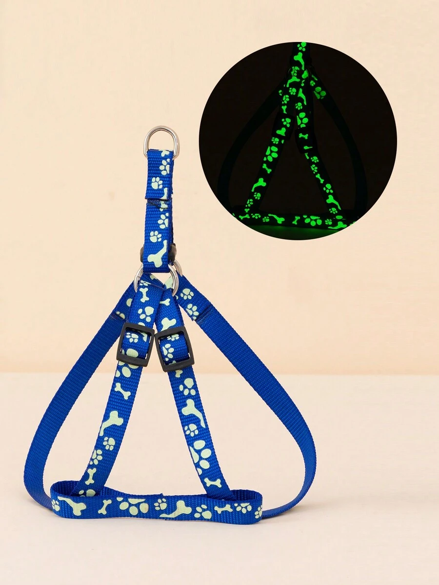 1pc Bone & Paw Print Design Suspenders With Fluorescent & Night Vision Function Suitable For Indoor And Outdoor Use For Cats And Dogs