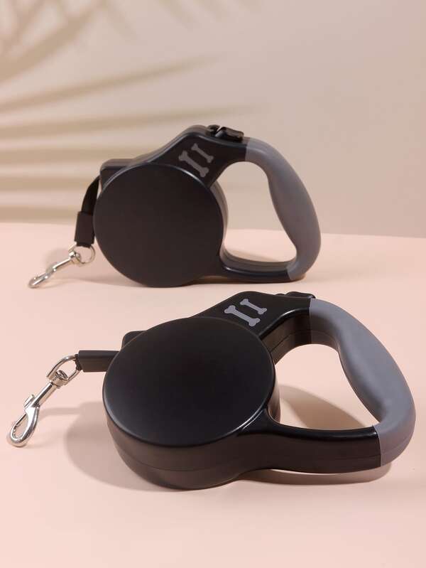 1pc Solid Color Bone Printed Retractable Leash For Small & Medium Dog And Cat Outdoor Walking