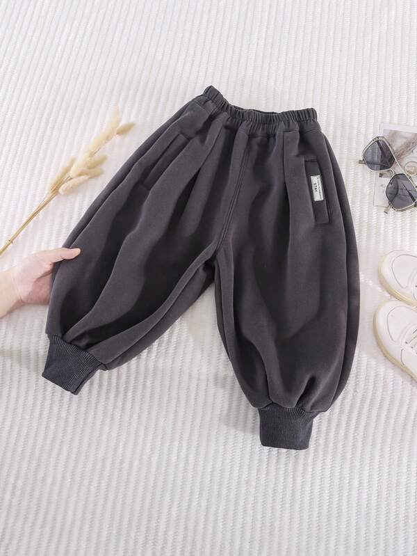 1pc Boy's Simple Patchwork Fleece-lined Long Pants & Sports Pants, Autumn And Winter