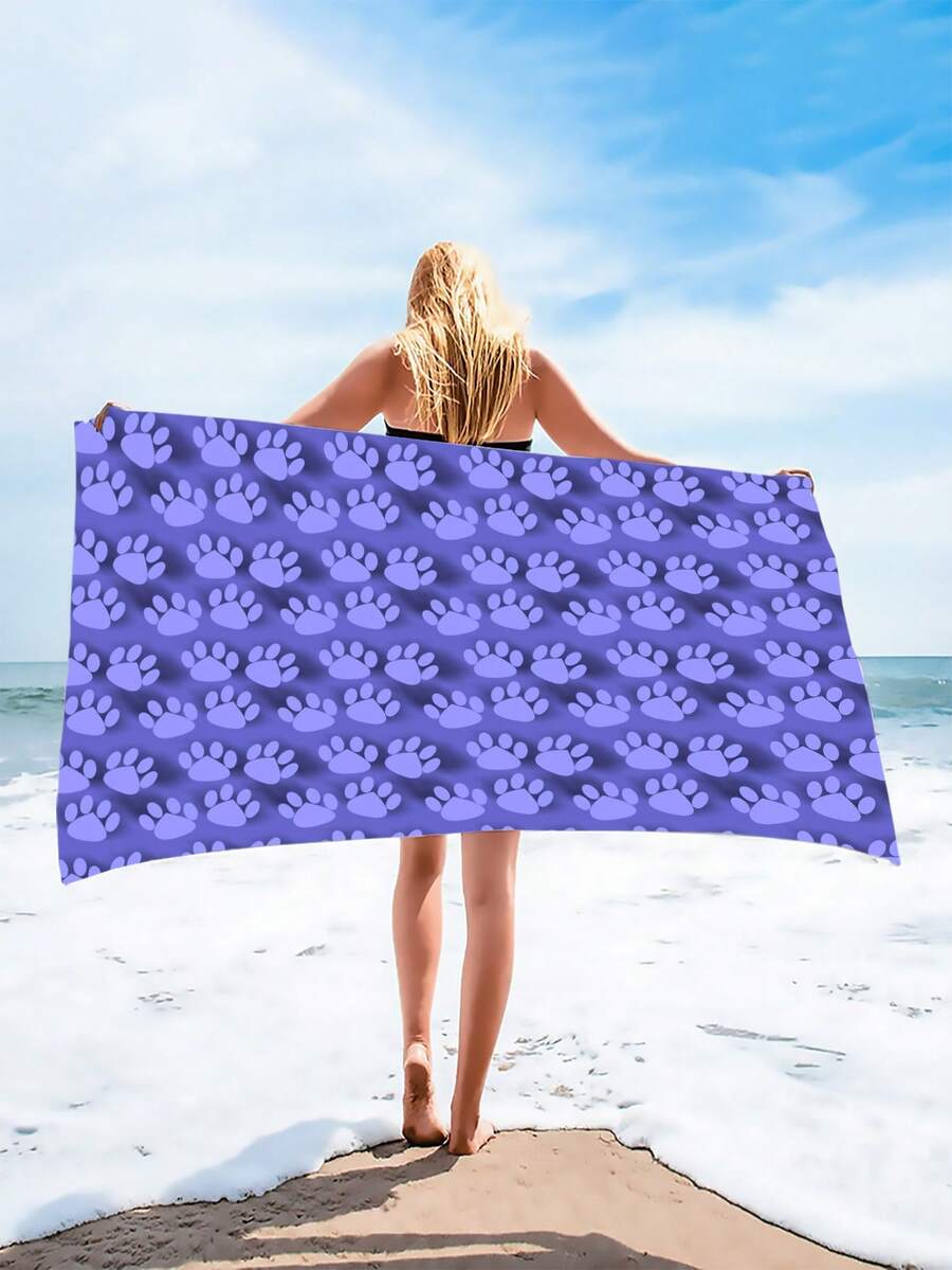 1pc Breathable Oversized Beach Towel, Soft & Lightweight Quick Dry Bath Towel With Paw Print, Super Absorbent Towel