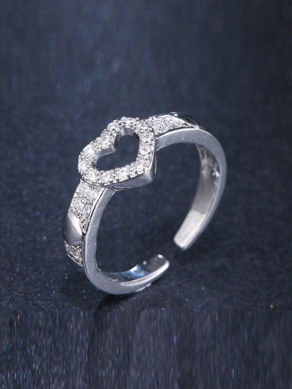 1pc Bride'S New Arrival Fashionable Simple Ins Style Personality Love & Multi-Diamond Design All-Match Ring For Women