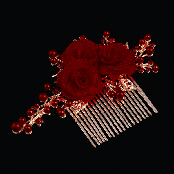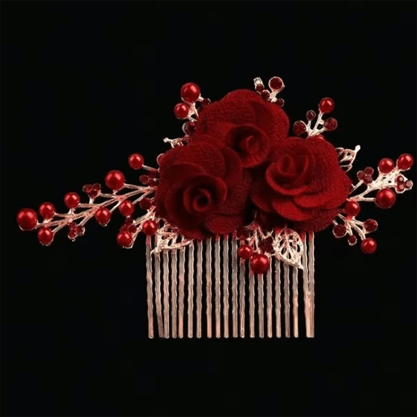 1pc Bride Dress Accessories Red Rhinestone Floral Pearl-like Handmade Hairpin
