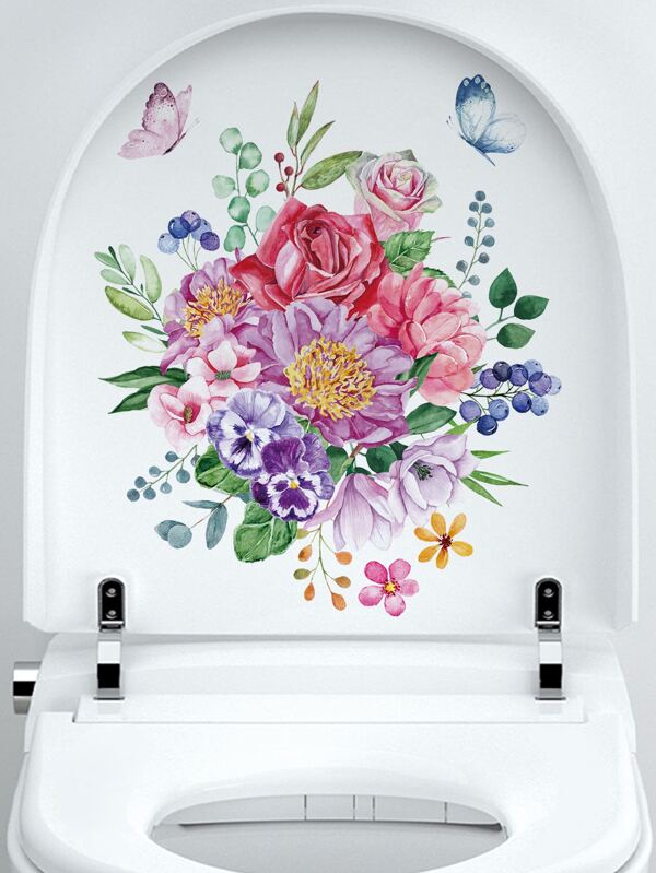 1pc Butterfly & Floral Pattern Toilet Lid Decal