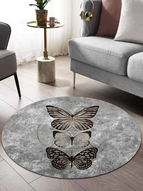 1pc Butterfly Pattern Round Carpet Living Room Floor Mat, Simple Style Round Mat For Dressing Room, Study Room, Anti-slip, Water Absorption Home Decoration