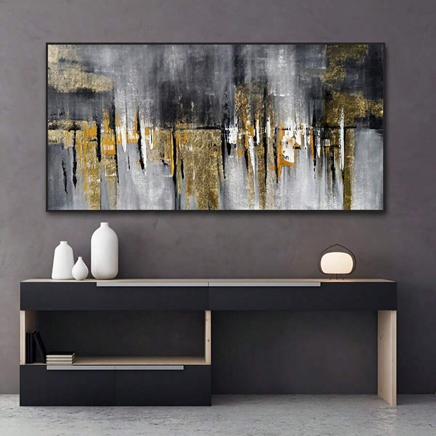 1pc Canvas Painting,Modern Abstract Wall Art Decor, Black And Golden Printed Poster, Luxury Wall Picture For Living Room Sofa Wall Decor,Mural,Home Decor No Frame