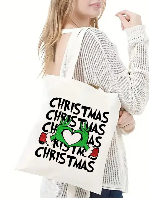 1pc Canvas Shopping Bag, Portable Shoulder Bag, Trendy Large Capacity Tote Bag For Daily Life Gift For Perfect For Party, Mom Gifts, Grandma Gifts