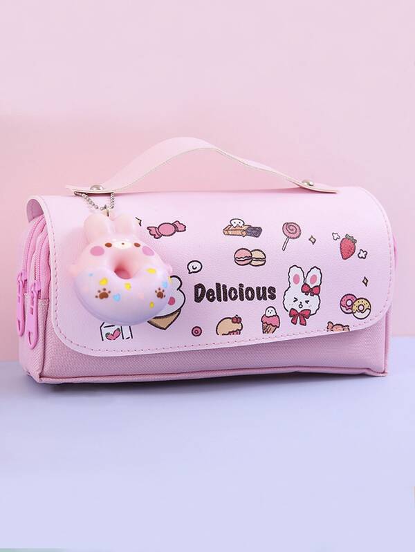 1pc Cartoon & Letter Graphic Pencil Bag