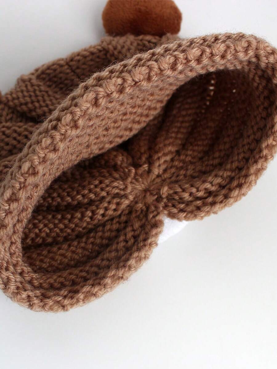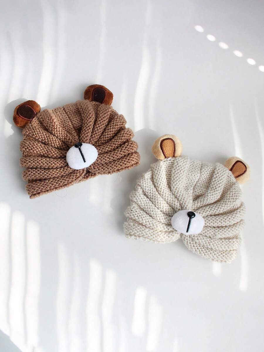 1pc Cartoon Bear Knitted Ear Protection Hat For Kids, Autumn And Winter, Baby Infant Toddler Beanie Cap