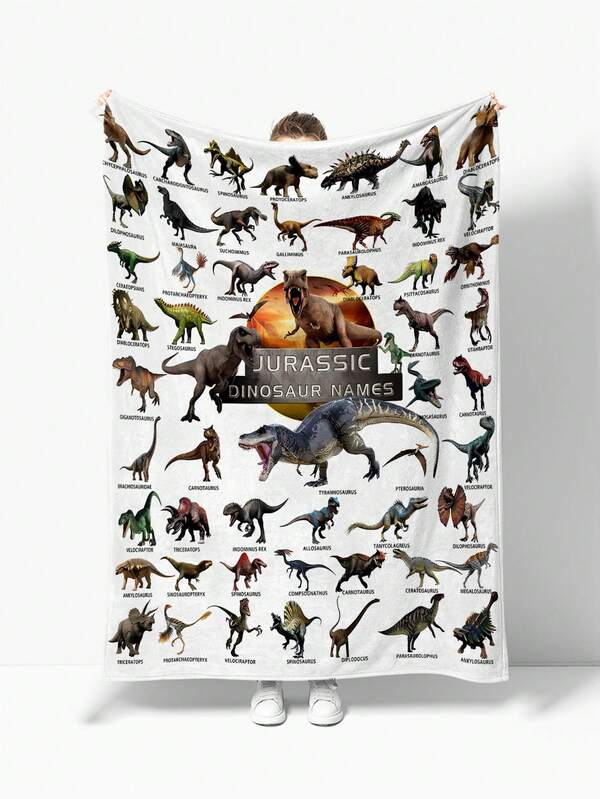 1pc Cartoon Dinosaur Pattern Coral Fleece Blanket For Home Use Unisex