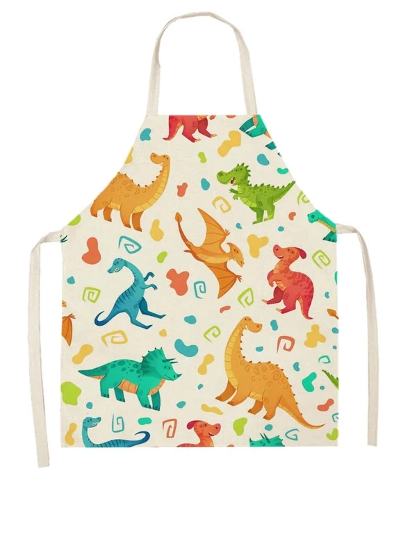 1pc Cartoon Dinosaur Printed Kitchen Apron For Cooking, Home Use