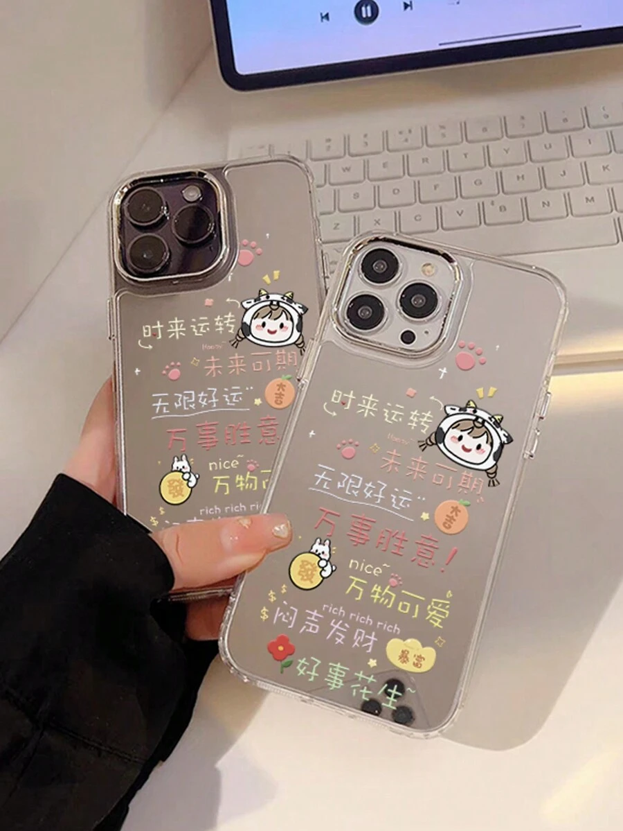 1pc Cartoon Girl Head Pattern Acrylic Phone Case, Shockproof, Suitable For Iphone 12/13 Pro, 14 Plus And 15, Cute Design