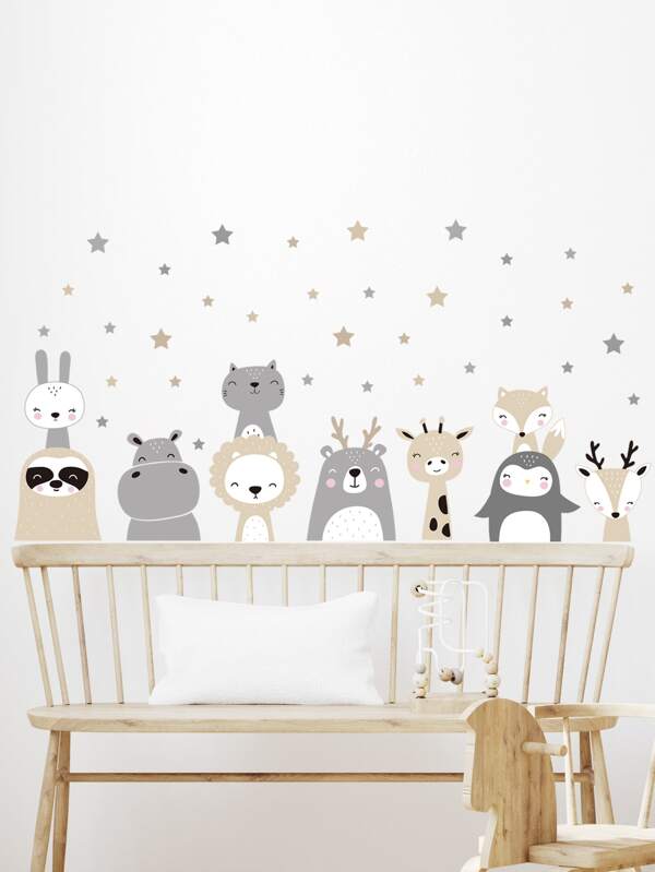 1pc Cartoon Lion Bunny Wall Sticker, Home Decor Animals Stars Wall Paper, Kawaii Decal for Kids Room Baby Nursery Bedroom Mural