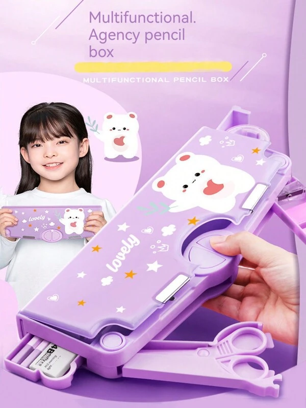 1pc Cartoon Multifunctional Stationery Case Creative Double Layer Organizer Large Capacity Pencil Case Student Girls Children's Personalized Pencil Box