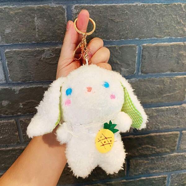 1pc Cartoon Plush Long-Eared Rabbit Keychain Pouch Pendant With Keyring For Car Key Or Bag