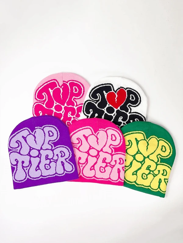 1pc Casual Unisex Knitted Beanie Hat With Street Letter Jacquard Pattern, Stretchy & Warm Winter Cap