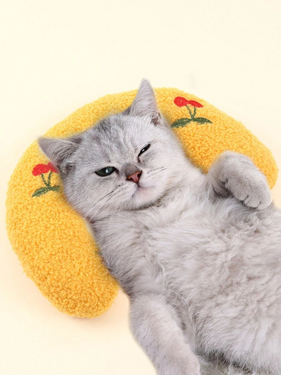 1pc Cat Shaped Plush Pillow Support Neck U-Shape Pillow For Deep Sleep, Random Color