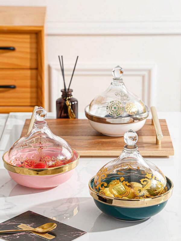 1pc Ceramic Baking Bowl For Desserts Such As Creme Caramel, Egg Pudding, Steam Egg And Fruit Salad, With Lid, Suitable For Home Use