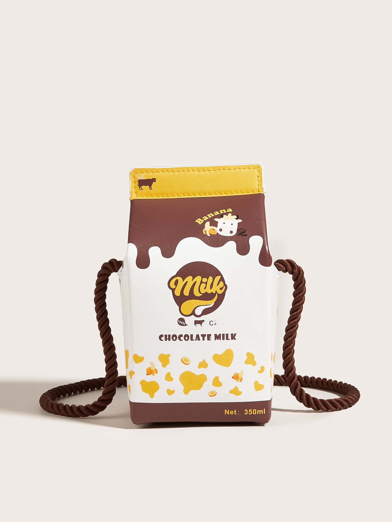 1pc Children's Brown Chocolate Banana Cow Pattern Pu Milk Box Cartoon 3d Fun Shoulder Bag Crossbody Bag For Daily Use