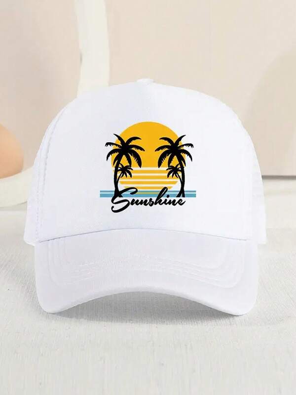 1pc Children'S Sunshade Breathable Mesh Baseball Cap With Coconut Tree Pattern For Outdoor Sport