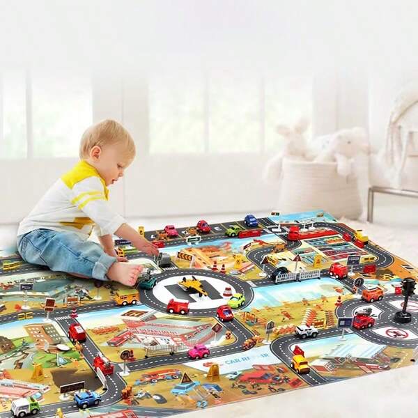 1pc Children'S Toy City Construction Site Traffic Parking Lot Large Floor Mat, Indoor/Outdoor Game Mat, Outdoor Toy, Best Gift For Kids