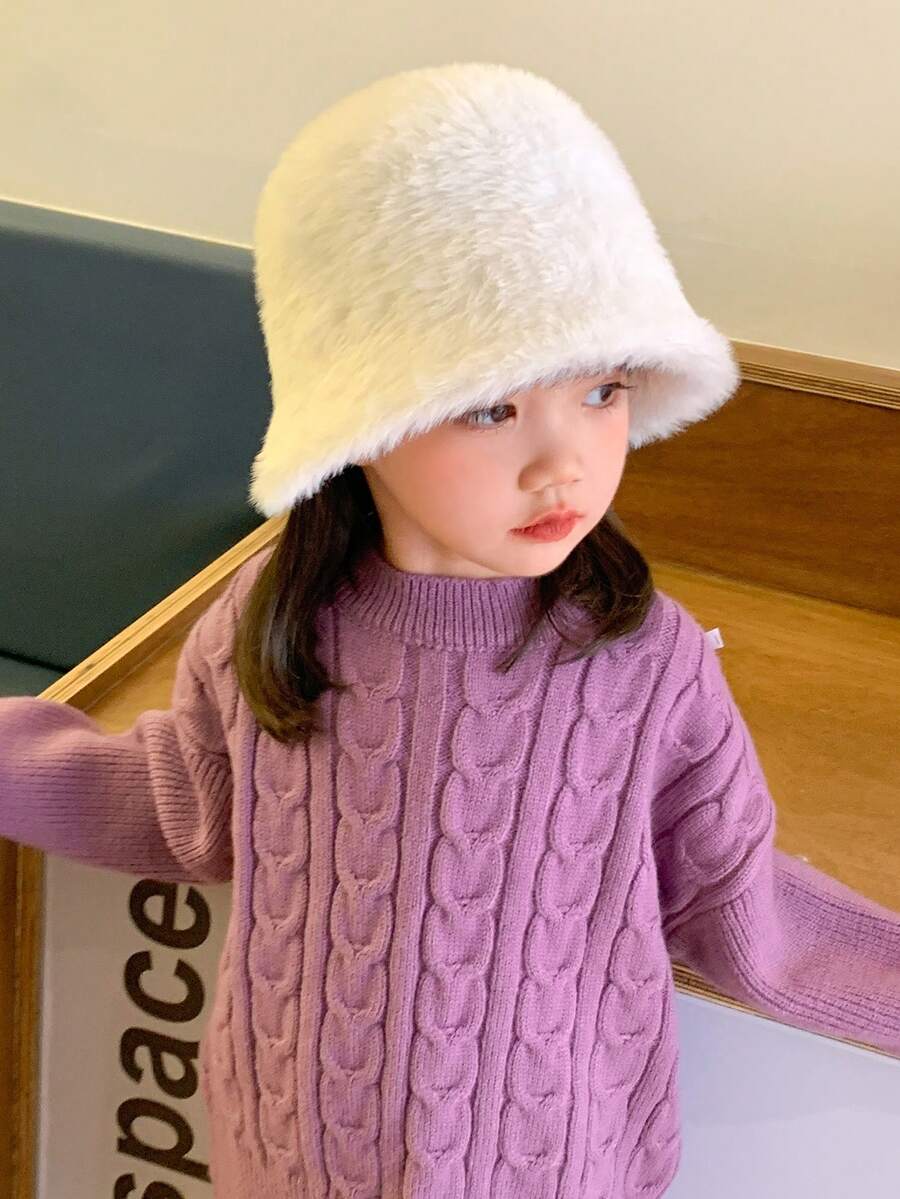 1pc Children's Fisherman Hat For Fall And Winter, Korean Style Lamb Wool Bucket Hat, Warm And Cute, Suitable For Girls And Boys