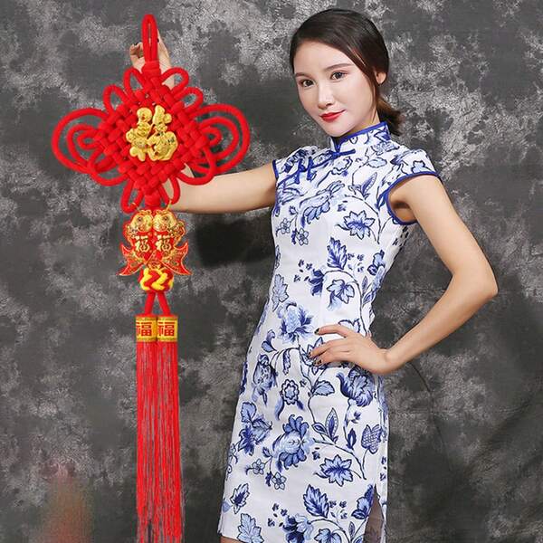 1pc Chinese Knot Pendant With Lucky Character Print, Suitable For Spring Festival Decoration